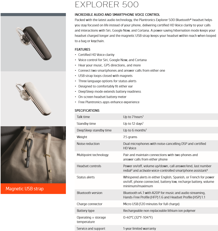 Plantronics Explorer 500 Bluetooth Headset